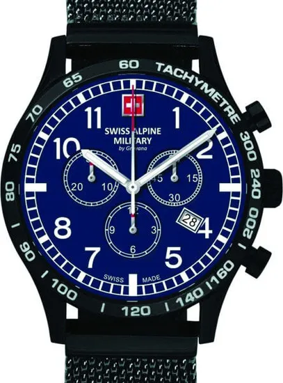 • Manufacturer no.: 1746.9175 • Manufacturer series: Chrono • Functions: Chronograph, Date, Hour, Minute, Second • Movement: Battery (quartz) • Movement label: 5030.D, Ronda • Dial color: Blue • Display: Analog • Water resistant: 10 • Bezel: Fixed • Surface finish: Matted, Polished • Case color: Black • Case material: Stainless steel • Case thickness: 11 • Case shape: Round • Case width: 43 • Caseback: screwed, Stainless steel bottom • Gender: Mens • Glas: hardened, Mineral glass • Lighting: Illumin. hands, Illumin. indexes • Style: Sporty • Strap material: Stainless steel • Strap color: Black • Lug width: 22 • Clasp: Folding clasp • Max wrist circumferences: 210 • Item weight: 0.17 • Scope of delivery: Box, Packaging, Warranty documents