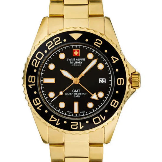 • Manufacturer no.: 7052.1117 • Manufacturer series: Diver • Functions: Date, Hour, Minute, Second • Movement: Battery (quartz) • Movement label: 515-24H, Ronda • Dial color: Black • Display: Analog • Water resistant: 10 • Bezel: counterclockwise, Turnable • Surface finish: Matted, Polished • Case color: Gold • Case material: Stainless steel • Case thickness: 11 • Case shape: Round • Case width: 42 • Caseback: screwed, Stainless steel bottom • Gender: Mens • Crown: Screwed • Glas: hardened, Mineral glass • Lighting: Illumin. hands, Illumin. indexes • Style: Sporty • Strap material: Stainless steel • Strap color: Gold • Lug width: 22 • Clasp: Folding clasp • Max wrist circumferences: 210 • Item weight: 0.16 • Scope of delivery: Box, Packaging, Warranty documents