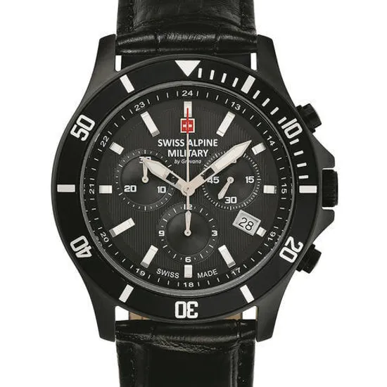 • Manufacturer no.: 7022.9577 • Manufacturer series: Chrono 42mm • Functions: Chronograph, Date, Hour, Minute, Second • Movement: Battery (quartz) • Dial color: Black • Display: Analog • Water resistant: 10 • Bezel: Fixed • Surface finish: Matted, Polished • Case color: Black • Case material: Stainless steel • Case thickness: 11 • Case shape: Round • Case width: 42 • Caseback: screwed, Stainless steel bottom • Gender: Mens • Glas: hardened, Mineral glass • Lighting: Illumin. hands, Illumin. indexes • Style: Sporty • Strap material: Calf leather • Strap color: Black • Lug width: 22 • Clasp: Buckle clasp • Max wrist circumferences: 220 • Item weight: 0.08 • Scope of delivery: Box, Packaging, Warranty documents