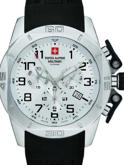 • Manufacturer no.: 7063.9833 • Manufacturer series: Chrono 45mm • Functions: Chronograph, Date, Hour, Minute, Second • Movement: Battery (quartz) • Movement label: Swiss Made • Dial color: Silver • Display: Analog • Water resistant: 10 • Bezel: Fixed • Surface finish: Matted, Polished • Case color: Silver • Case material: Stainless steel • Case thickness: 12 • Case shape: Round • Case width: 45 • Caseback: screwed, Stainless steel bottom • Gender: Mens • Glas: hardened, Mineral glass • Lighting: Illumin. hands, Illumin. indexes • Style: Sporty • Strap material: Silicon • Strap color: Black • Lug width: 24 • Clasp: Buckle clasp • Max wrist circumferences: 220 • Item weight: 0.12 • Scope of delivery: Box, Packaging, Warranty documents