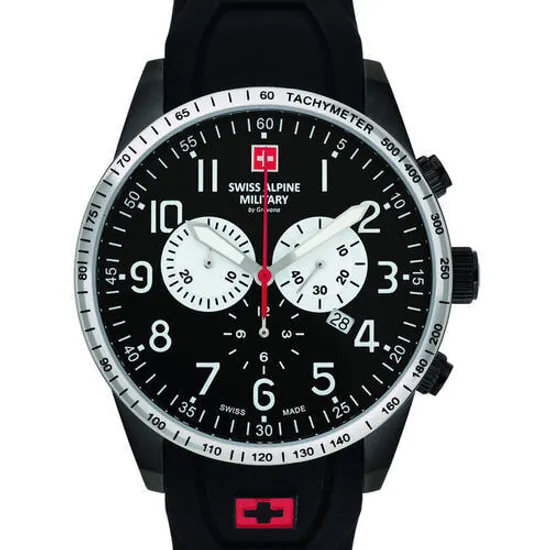 • Manufacturer no.: 7082.9877 • Manufacturer series: Chrono • Functions: Chronograph, Date, Hour, Minute, Second • Movement: Battery (quartz) • Movement label: 5030.D, Ronda • Dial color: Black • Display: Analog • Water resistant: 10 • Bezel: Fixed • Surface finish: Matted, Polished • Case color: Black • Case material: Stainless steel • Case thickness: 12 • Case shape: Round • Case width: 45 • Caseback: screwed, Stainless steel bottom • Gender: Mens • Glas: hardened, Mineral glass • Lighting: Illumin. hands, Illumin. indexes • Style: Sporty • Strap material: Silicon • Strap color: Black • Lug width: 24 • Clasp: Buckle clasp • Max wrist circumferences: 230 • Item weight: 0.09 • Scope of delivery: Box, Packaging, Warranty documents