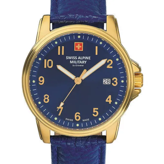 • Manufacturer no.: 7011.1515 • Manufacturer series: Herrenuhr 40mm • Functions: Date, Hour, Minute, Second • Movement: Battery (quartz) • Dial color: Blue • Display: Analog • Water resistant: 10 • Bezel: Fixed • Surface finish: Matted, Polished • Case color: Gold • Case material: Stainless steel • Case thickness: 10 • Case shape: Round • Case width: 40 • Caseback: screwed, Stainless steel bottom • Gender: Mens • Glas: hardened, Mineral glass • Lighting: Illumin. hands, Illumin. indexes • Style: Classic • Strap material: Calf leather • Strap color: Blue • Lug width: 20 • Clasp: Buckle clasp • Max wrist circumferences: 210 • Item weight: 0.06 • Scope of delivery: Box, Packaging, Warranty documents
